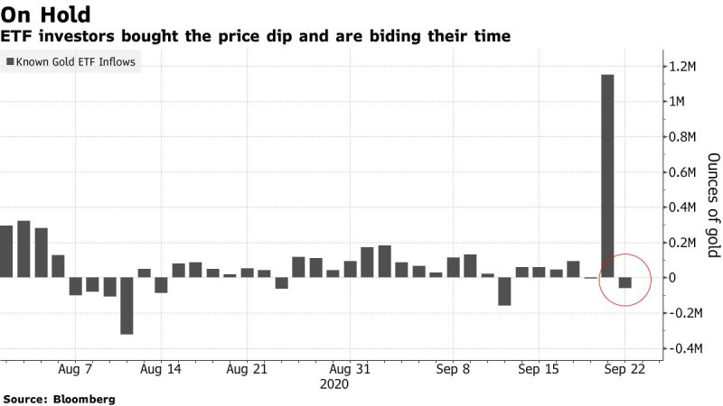 Bezprecedentní globální stimuly, záporné úrokové sazby a slábnou cílar vytlačily tento typ bezpečného přístavu na začátku srpna na rekordní maximum ad 2075 dolarů za troyskou unci. Některé banky předpovídaly tehdy ještě zářivější ceny, jenomže vzchopit se mezitím povedlo americkému dolaru, a zlato část svých zisků odevzdalo.