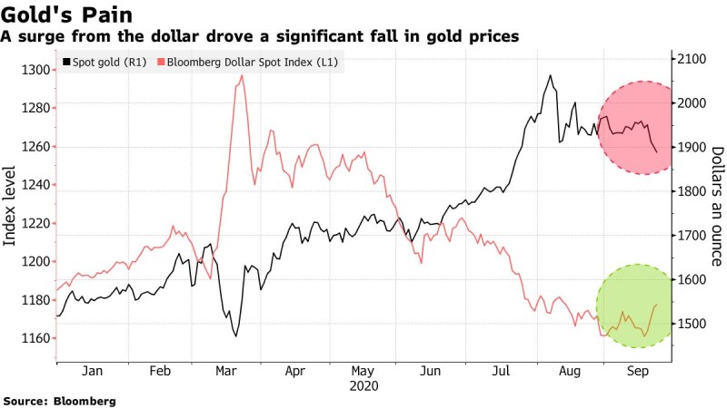 Dolar je teď tím, co cenou zlata hýbe nejvíce. Americké měně se tento týden daří posilovat I přesto, že americká centrální banka cedila na konto úrokových sazeb další ultraholubičí komentáře. Odkud bere tuto nově nalezenou chuť k životu? Jsou to vadnoucí naděje na další podpůrná opatření ze strany Spojených států. To ale tlačí dolů zlato, a to I přesto, že napříč Evropou přibývá nových případů nákazy koronavirem a v USA počet obětí na životech překročil 200.000.